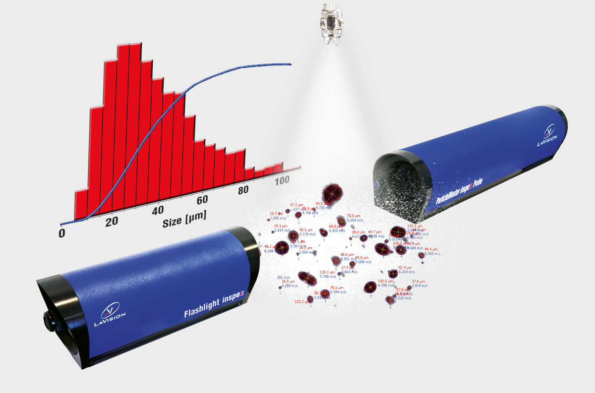 LaVision’s ParticleMaster inspex system is especially designed for quality control applications in industrial environments. It serves as a highly integrated laboratory and testing tool for the measurement of size, shape and velocity of spray droplets, particles and grains.