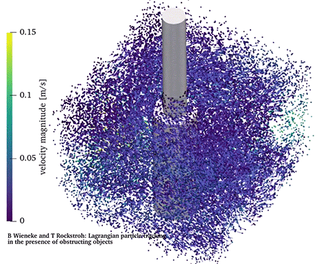 Pour résoudre ce problème pratique, LaVision introduit la nouvelle méthode « Object-aware Lagrangian Particle Tracking » (OA-LPT) pour intégrer de manière transparente la présence d'objets obstruant la vue dans le domaine de mesure pendant la reconstruction des particules en 3D.