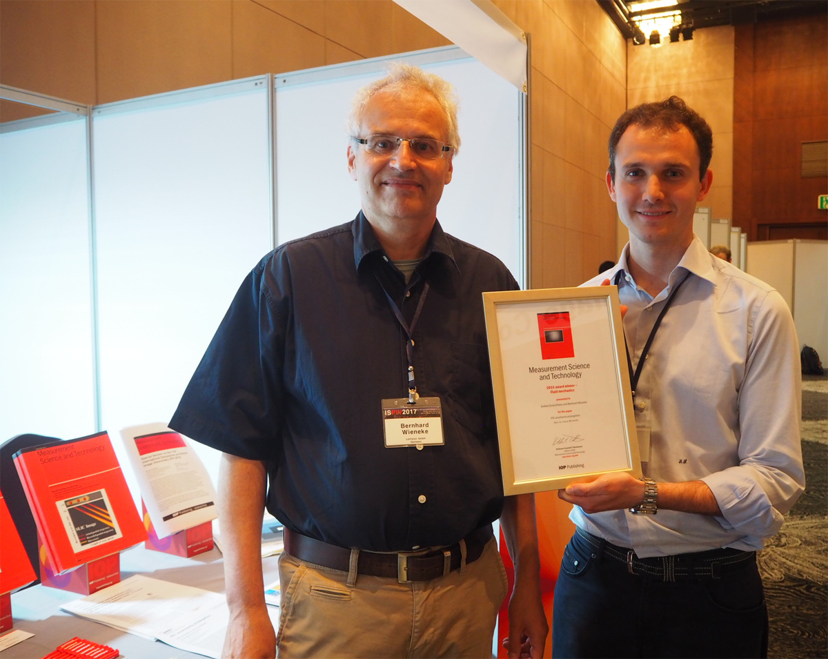 Le Comité de rédaction de la revue MST remet les prix «Outstanding Paper Awards» depuis 2005. Le prix 2016 dans la catégorie mécanique des fluides a été accordé à Andrea Sciacchitano du TU Delft et à Bernhard Wieneke de LaVision GmbH pour leur publication intitulée “PIV uncertainty propagation”. Ils étaient très heureux de recevoir ce prix lors du Symposium international PIV'17 à Busan, en Corée du Sud.