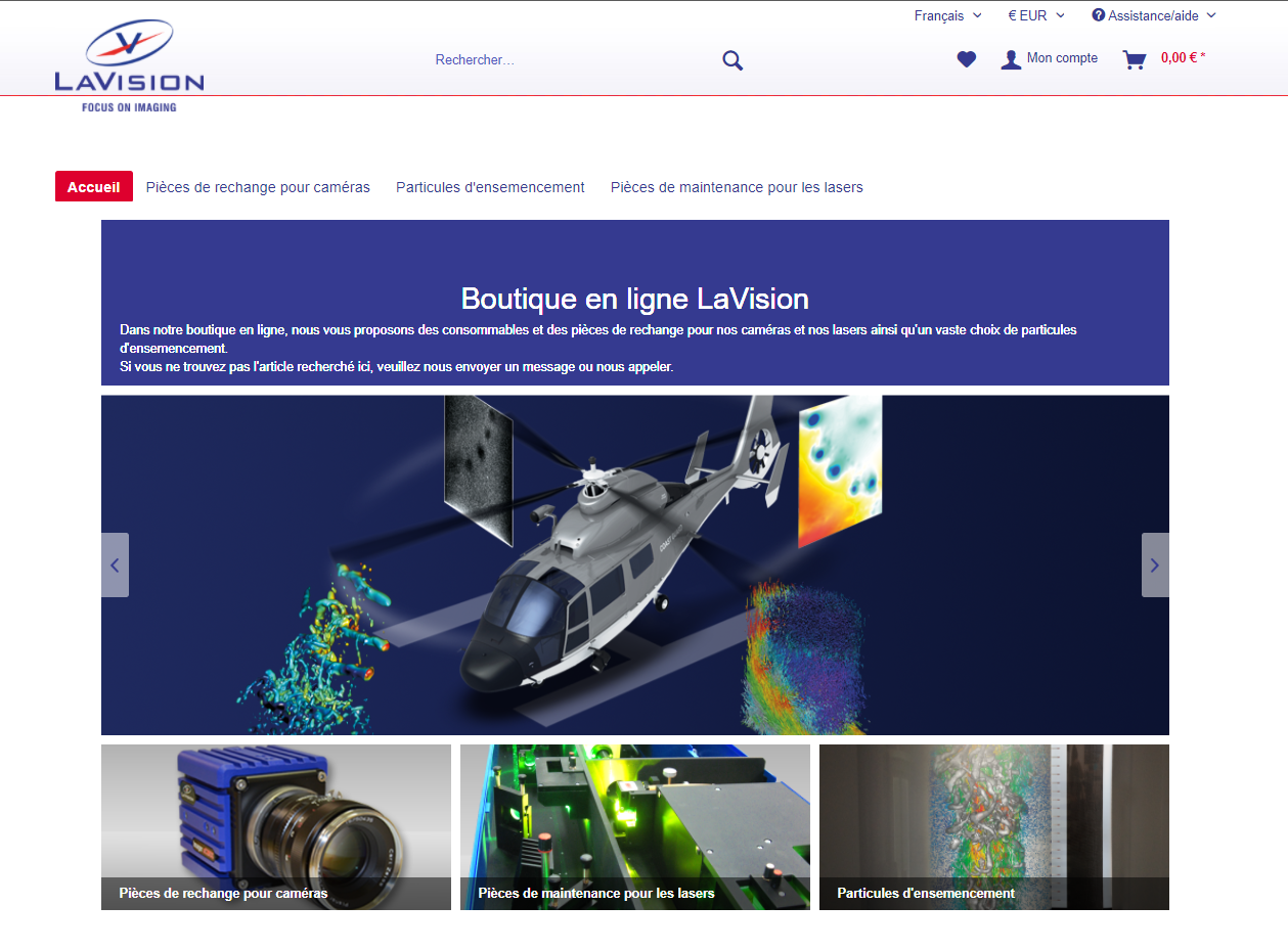Avec notre nouvelle boutique en ligne, nous offrons à nos clients du monde entier la possibilité de commander en ligne, 24 heures sur 24, des pièces de rechange pour nos différents modèles de caméras, des pièces de maintenance pour différents modèles de lasers, ainsi que des particules d'ensemencement pour diverses applications.