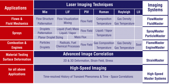 Le portfolio des produits LaVision repose sur les techniques de mesure optiques suivantes :